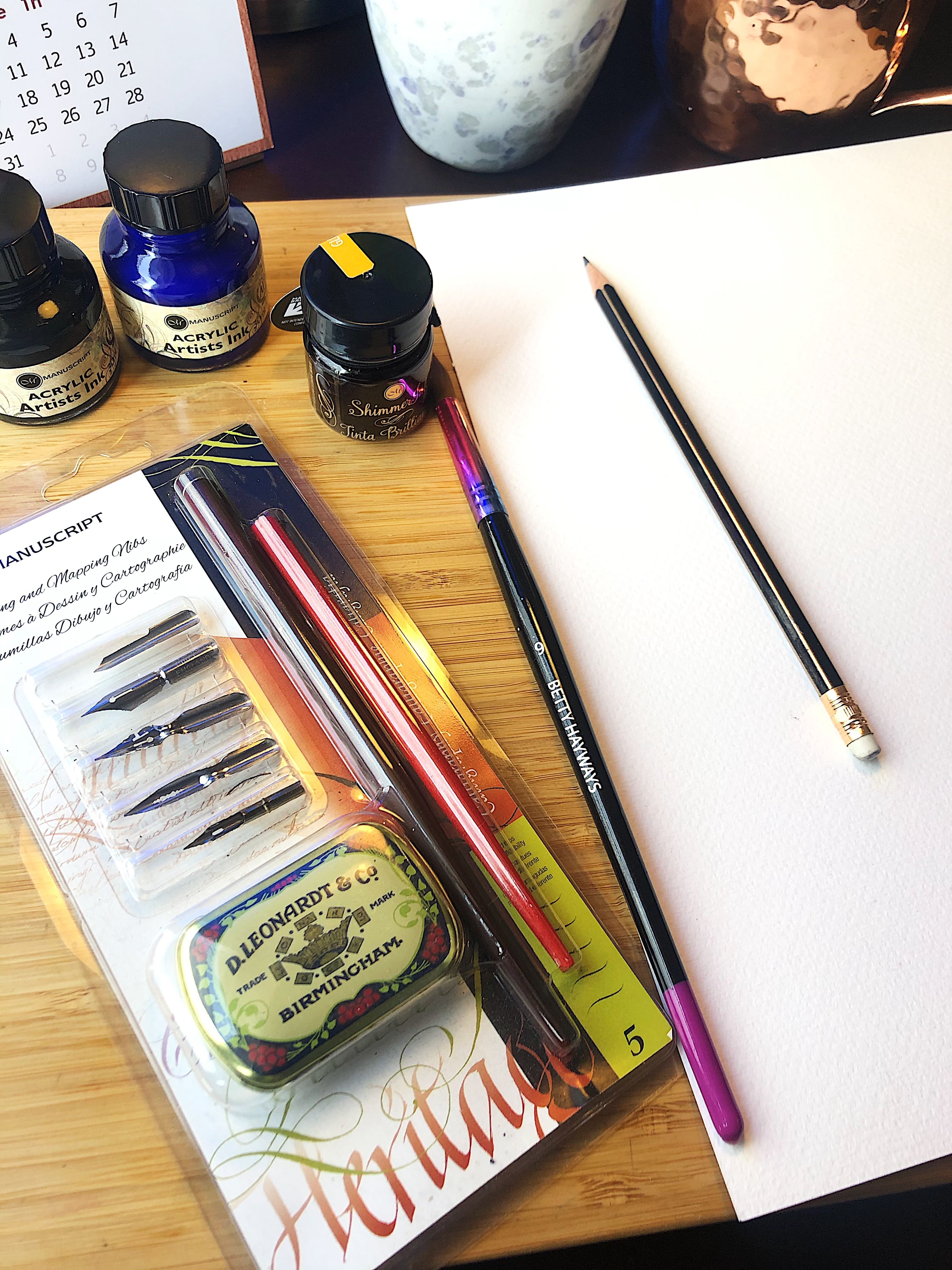 By using a nib, the our artist of the month Payal Sinha, is choosing to have more control over her work, be able to create bold lines using a calligraphy ink – like the fantastic Manuscript black calligraphy ink on show here. Payal gives you a step-by-step on how she created her artwork below.